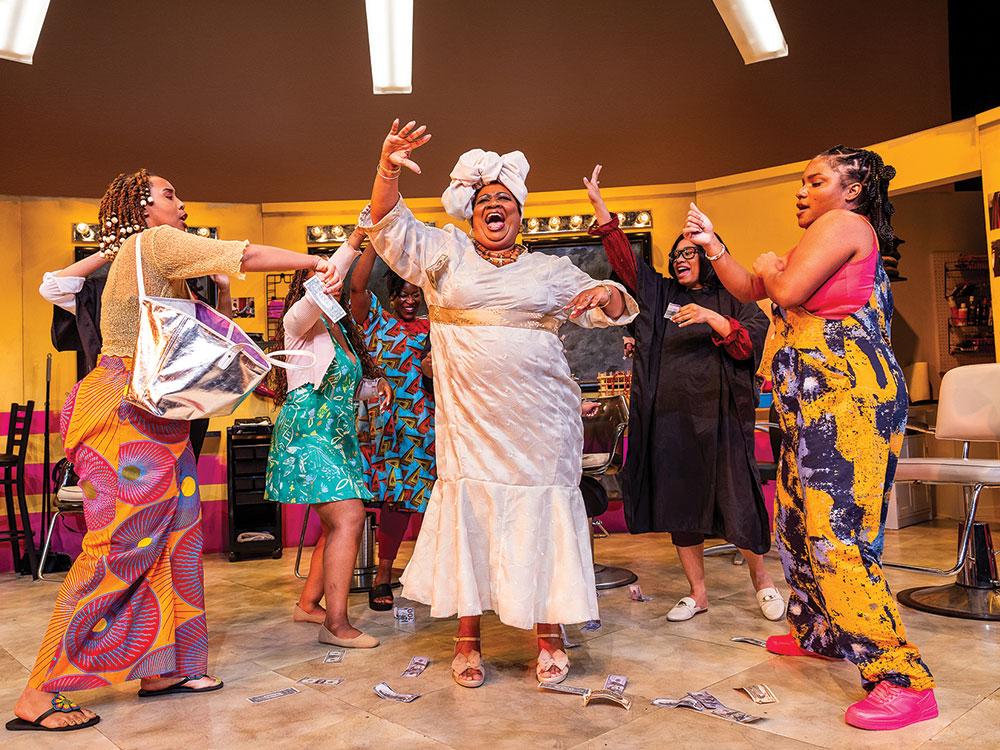 Under the sharp direction of Summer L. Williams, a first-rate cast achieves the striking balance of humorous moments and serious implications with riveting results. Dru Sky Berrian is commandingly poignant as Marie moves from early uncertainty to great eventual inner strength. Crystin Gilmore has scene-stealing persuasiveness in resenting Ndidi's seeming usurping of her position as a star stylist. Kwezi Shongwe captures Aminata's uncommon sensitivity-especially as she supports Bea in her moments of dissatisfaction. Catia has all of Ndidi's fire and confidence. MarHadoo Effeh finds all of Miriam's complicated thinking. MaConnia Chesser makes the most of Jaja's eye-catching entrance-kudos to costume designer Danielle Domingue Sumi. Joshua Olumide catches all the elusiveness of James-Aminata's husband-and moves easily and convincingly between the vendors.