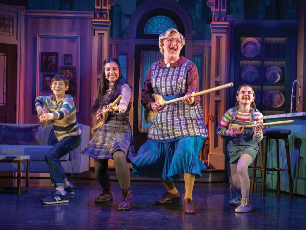 Parenting can be just as demanding for a father as for a mother. Fans of the late great Robin Williams will fondly remember his touching portrayal of an earnest father in the 1993 hit movie "Mrs. Doubtfire." While Williams displayed his signature comic brilliance as father Daniel Hillard, who disguised himself as the title nanny to take care of his own three children, the movie proved affecting in demonstrating his deep caring. This combination of comedy and insight should be as essential to a musical version of the film. Unfortunately, the 2019 show—on Broadway in 2021—seems to overdo the comic factors so much that the resulting effort—with music and lyrics by Wayne Kirkpatrick and Karey Kirkpatrick and book by Karey Kirkpatrick and John O'Farrell - often sacrifices custody of the ultimate balance that made the film so memorable.