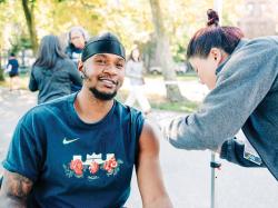 The event offered free flu and COVID-19 vaccines, educational health resources, and family activities including pumpkin decorating, face painting, and music. Attendees also received healthy snacks donated by Farmer's Fridge and local supermarkets.