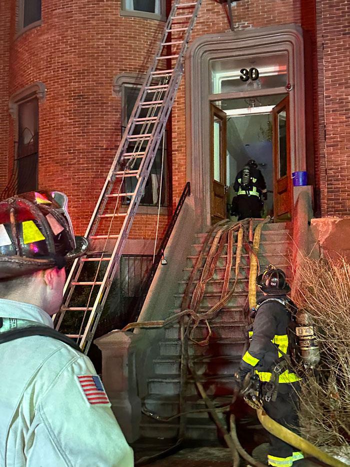 "The fire traveled from the basement of 30 Worcester Square. Up to the walls to the 1st floor. Heavy fire is knocked down major overhauling throughout."